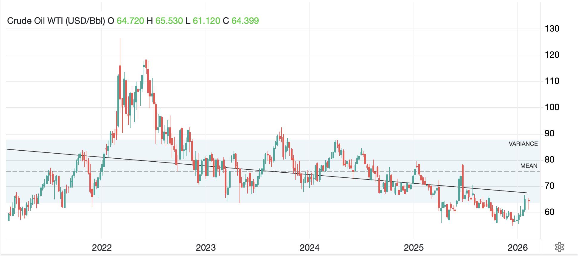 Back to metals, which continue to be THE story these days, gold (+2.0%) has reclaimed the $5000/oz level and while it is lower in the past week, remains nearly 17% higher YTD. Silver (+6.0%) is also rebounding nicely along with platinum (+3.8%) as more and more discussions have ascribed last Friday’s rout to month end delivery and position issues amongst a few very large players who were able to prevent some major damage to their own balance sheets. However, as I have maintained all along, the fundamentals are unchanged; there is a shortage of silver for industrial use and has been for several years. As to gold, there is no indication that central banks have stopped buying. These continue to be long-term plays and will likely drag the entire metals sector along for the ride.