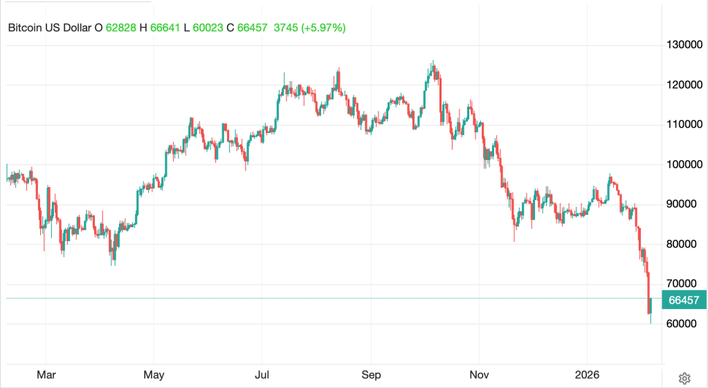 And Bitcoin (+5.8%), which has fallen nearly 50% since its highs in early October and 22% in the past week: