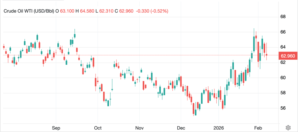 You may have noticed I missed oil (-0.4%) which has also seen some volatility as per the below chart, but not quite at the same level as the others. Part of that is the oil market is much larger and more liquid and part of that is that the whole Iran/US discussions question has provided fodder for both bulls and bears in short intervals resulting in no net movement over the past week.