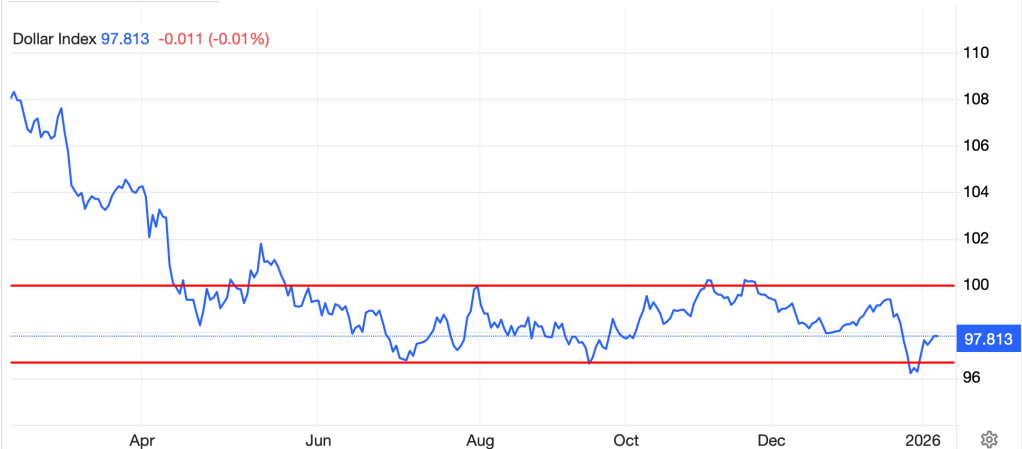 Finally, the dollar is giving back some of yesterday’s gains but remains within that longer term trading range. Using the dollar index (DXY) as our proxy, you can see just how little things have changed. All the talk last week of the breakdown in the dollar has been forgotten for now, although I continue to read about China building a digital currency backed by gold. I discussed that earlier this week and why I continue to believe that is unrealistic at this time.
