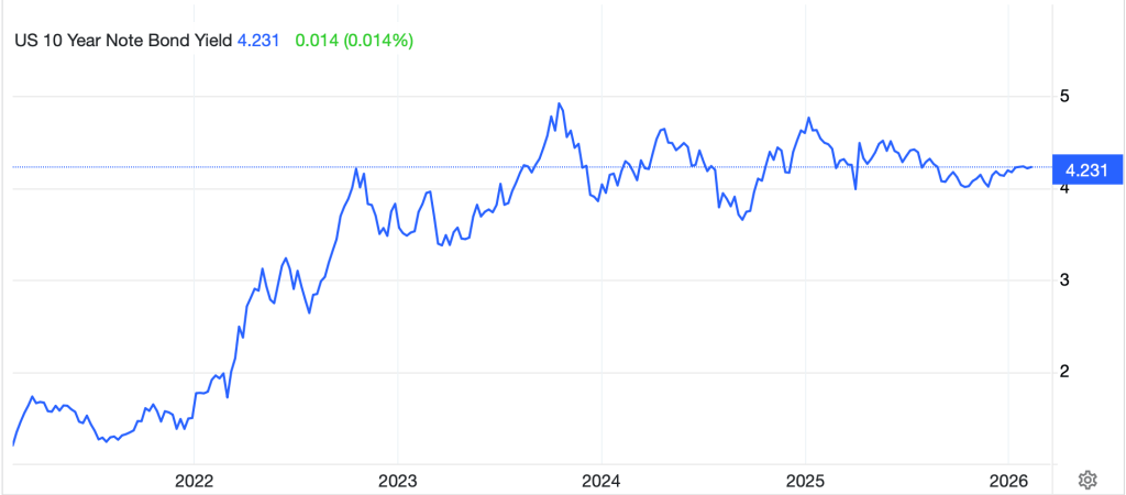If we look at bonds, Treasury yields fell -8bps yesterday and have rebounded by 2bps this morning. That was the largest single day move we’ve seen since October, and basically took the market right back to that 4.20% level that had been home for weeks.