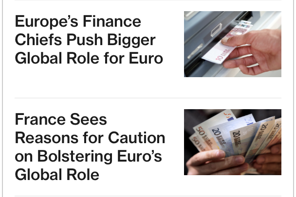 Briefly, the first story describes how the FinMins throughout the Eurozone want to expand the use of the euro globally and are considering offering swap lines to other nations that have difficulty accessing the single currency (although I cannot imagine why they would have such difficulty). The second story highlights the French explaining that if the first story is true, the euro might gain strength and that would hurt their export industries, something the current government can ill afford right now. It’s almost as if there is no agreement at all.