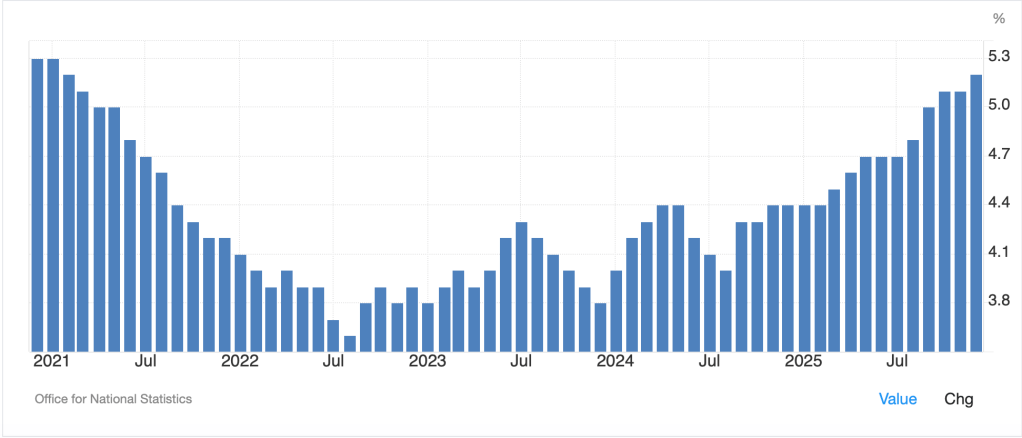 And for the UK, where this morning they reported the highest Unemployment Rate in five years (see chart below) with wages slipping, slowing growth and a worse inflation and energy picture, arguably, things are even worse.