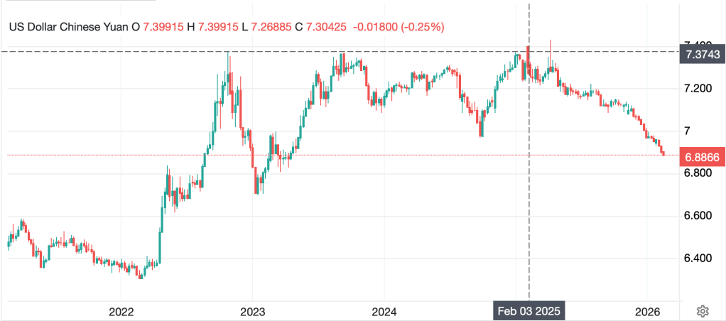 By now you are all aware that I have been more bullish than consensus on the basis of the US economic situation relative to that of Europe and the UK (Japan may have changed their stripes in the wake of Takaichi-san’s recent landslide election, so we will need to revisit that). After all, the combination of stronger GDP growth, higher interest rates and ostensibly calming inflation in the US relative to Europe and the UK (as well as numerous other nations) seemed to offer better investment opportunities, and therefore more demand for the dollar. And this was outside the need for dollars simply to service the enormous amount of USD debt outstanding around the world, estimated at between $60 trillion and $80 trillion.