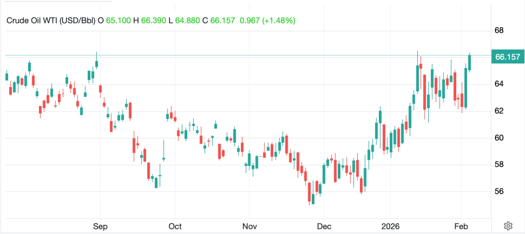 Texas tea (+1.5%) is following yesterday’s 4.6% rise with another strong session and as you can see in the chart below, is showing a very clear trend higher since December.