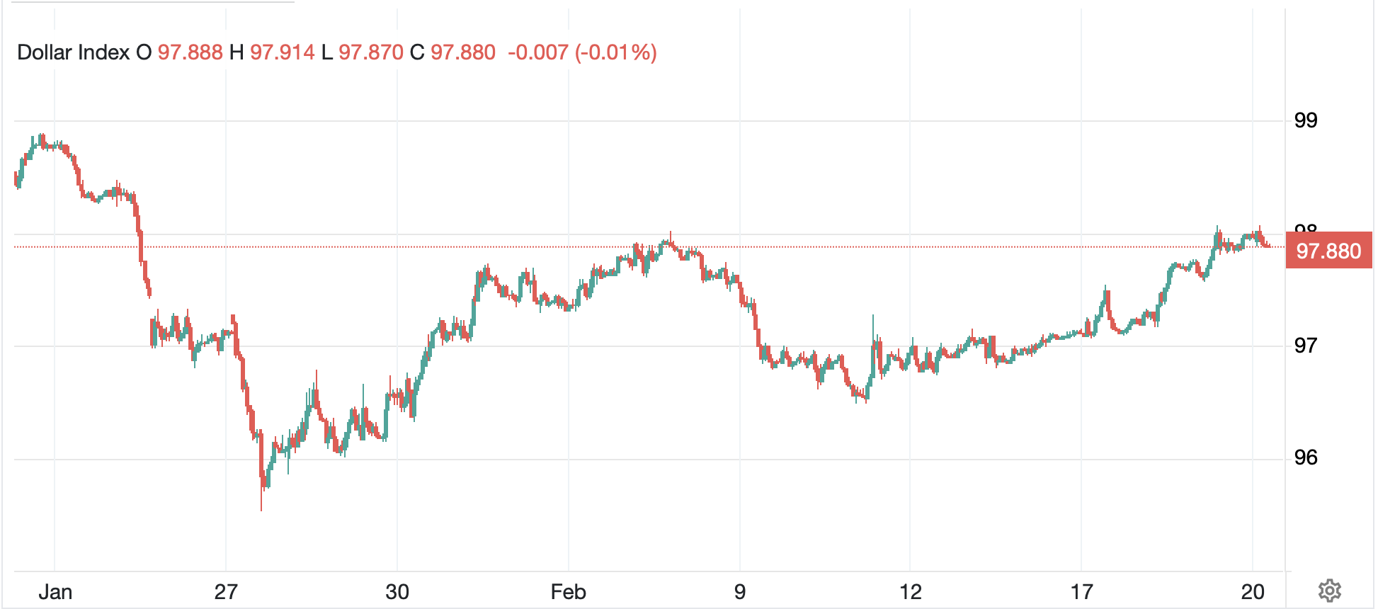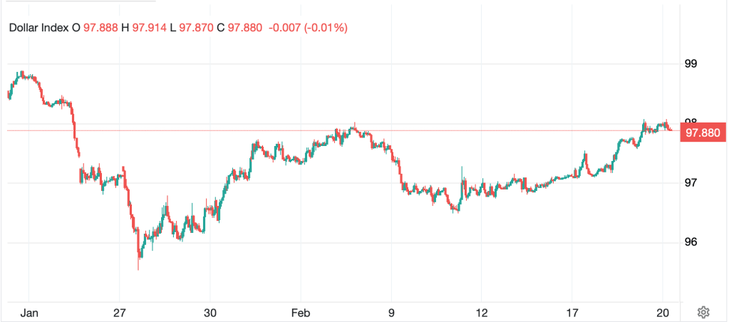 Finally, the dollar, despite frequent calls for its death, has been edging higher in a classic risk-off response as no matter how much some may hate the dollar philosophically, when bad things happen, its massive legal and liquidity advantages outweigh virtually everything else. Once again, the DXY has moved back to the middle of its trading range, just below 98.00 this morning, and to my eyes, shows no signs of an imminent collapse. Rather, if hostilities do break out in Iran, I expect the greenback to rally to at least the top of this trading range at 100, and depending on the situation, it could easily go higher.