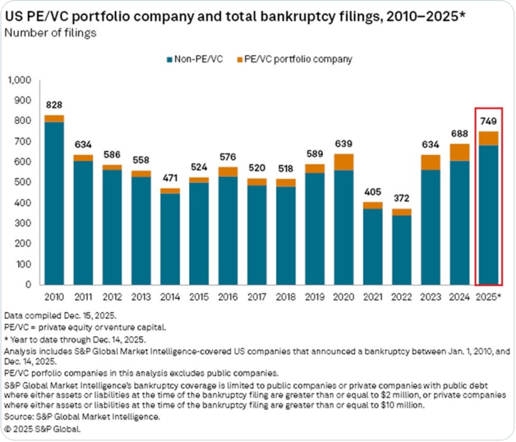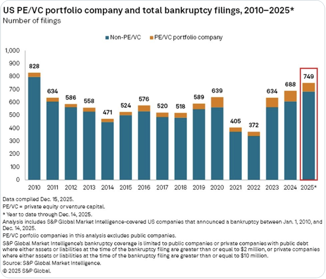 and the rise in corporate bankruptcies as per this X post from The Kobeissi Letter (a great follow on X) which shows the following chart.