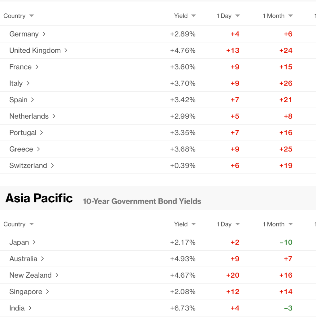 In the bond market, the oil price move has inflation back on everybody’s mind and that can be seen as yields around the world are higher across the board. While Treasury yields are higher by 4bps this morning, you can see much worse outcomes elsewhere in the world in the Bloomberg screenshot below: