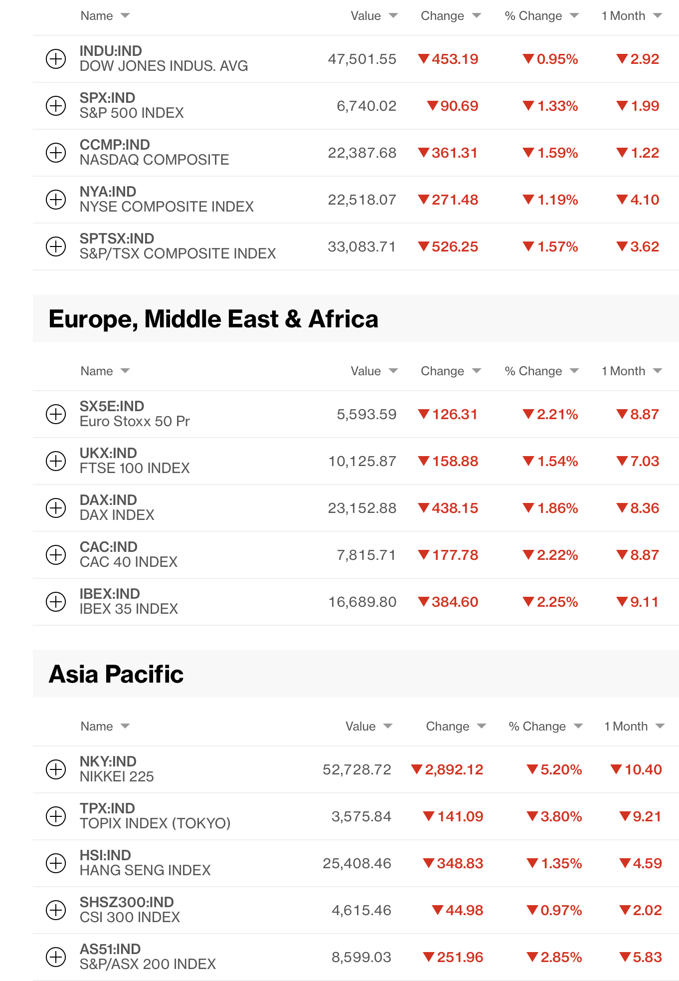 While those Asian markets showed just Japan, China and Australia, the smaller regional exchanges had a very rough time, with declines between -2.0% (India) and -6.0% (Korea) and everywhere in between.