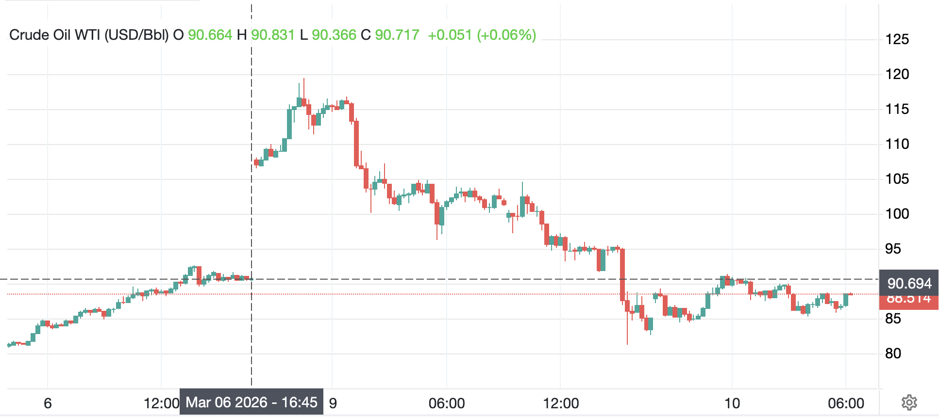 With oil back to Friday morning’s, still elevated, prices, it’s almost as if nothing happened yesterday. The two stories that appear to have driven the remarkable reversal early Monday morning were first, the discussion about the G7 potentially coordinating a release of strategic reserves, with that meeting slated for this morning. The other catalyst apparently was a comment from President Trump that, having made significant progress on their objectives, the war could be over “very soon”. Obviously, that would be a great outcome for all involved, although it remains to be seen if that will be the case.