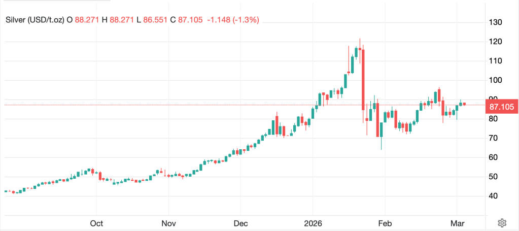 The interesting thing to me is that Trump’s comment about the war ending soon were not made until 5:45pm. This tells me that there was a major buy order that went through the market shortly before the close, a feature that we have seen more frequently of late. My point is there is still much more to the markets than just the Iran conflict. In fact, the cynical view is that the algorithms continue to control things completely and that there is a major effort to prevent a significant decline in equity markets overall, at least US equity markets. That’s a little conspiratorial, but one cannot ignore the evidence.
