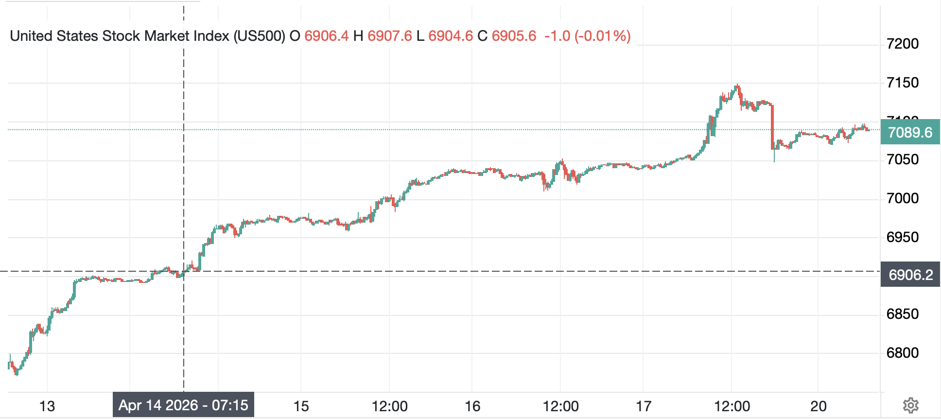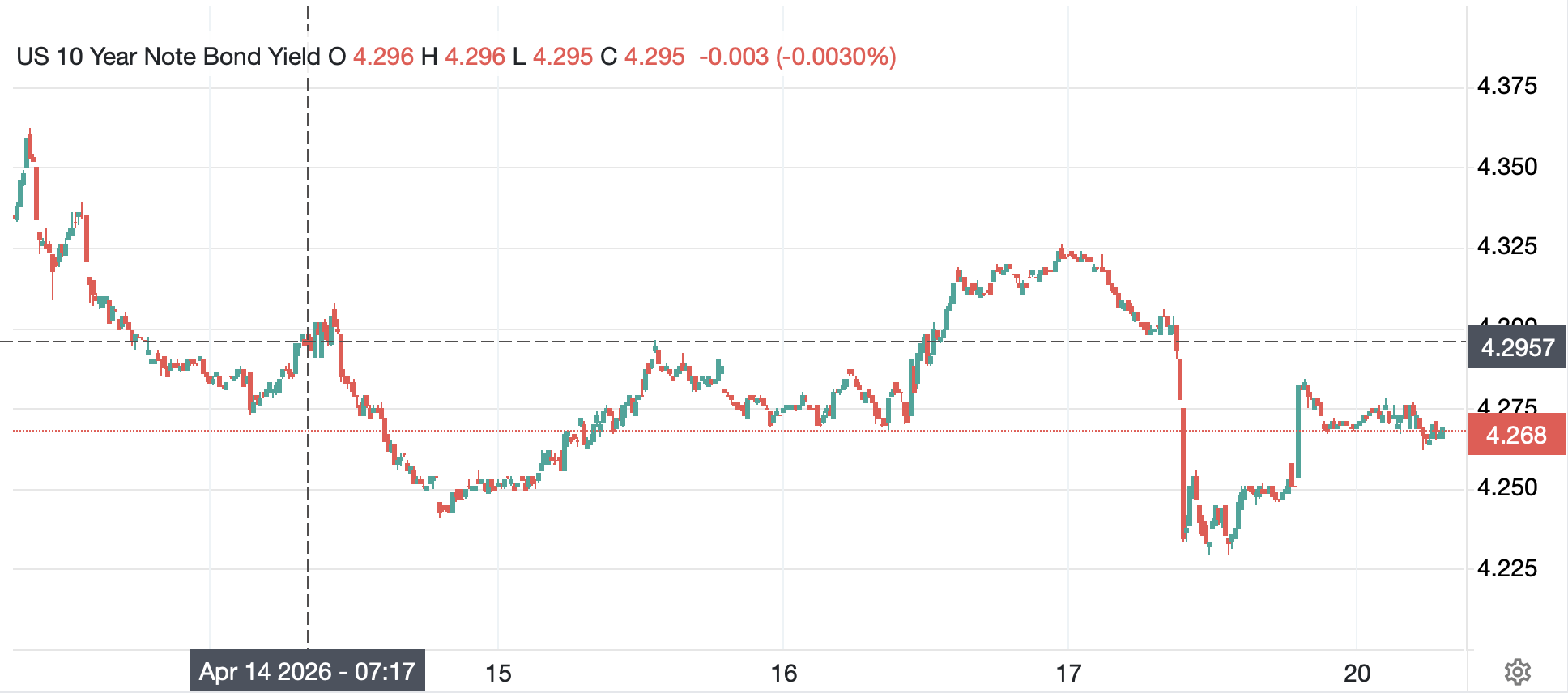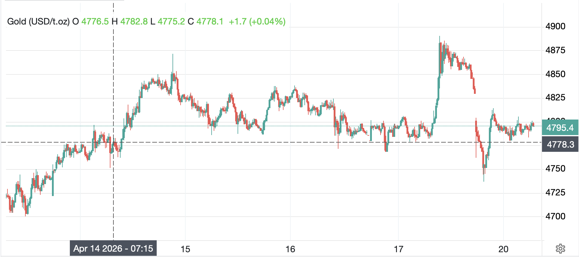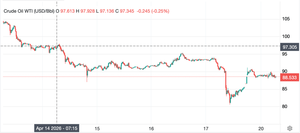 The interesting thing about markets is their ability to anticipate the way things work out, as despite the early panic over the weekend regarding the talks failing and the blockade being enforced, price action yesterday was entirely positive, reversing all the Sunday night fears. Once again, the oil chart for the past week shows the continued ups and downs, with the latest leg back down. This morning, WTI is lower by a further -2.3% and back well below $100/bbl.
