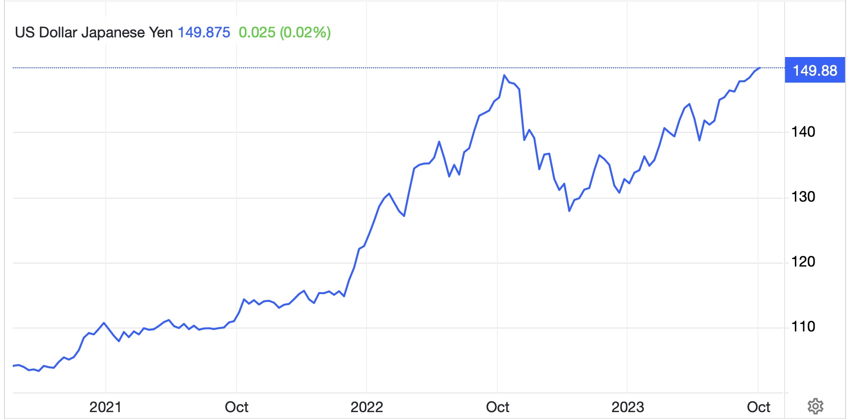 As USD/JPY approaches the psychological level of 150.00, there is a growing belief in the market that the BOJ is soon going to intervene. Recall, last week we heard about the urgency with which the MOF is watching the exchange rate. Historically, the next step would be for the BOJ to ‘check rates’. This is when they call around to the big Tokyo bank FX trading desks and ask for levels. The implication is they are ready to sell dollars and defend the yen.