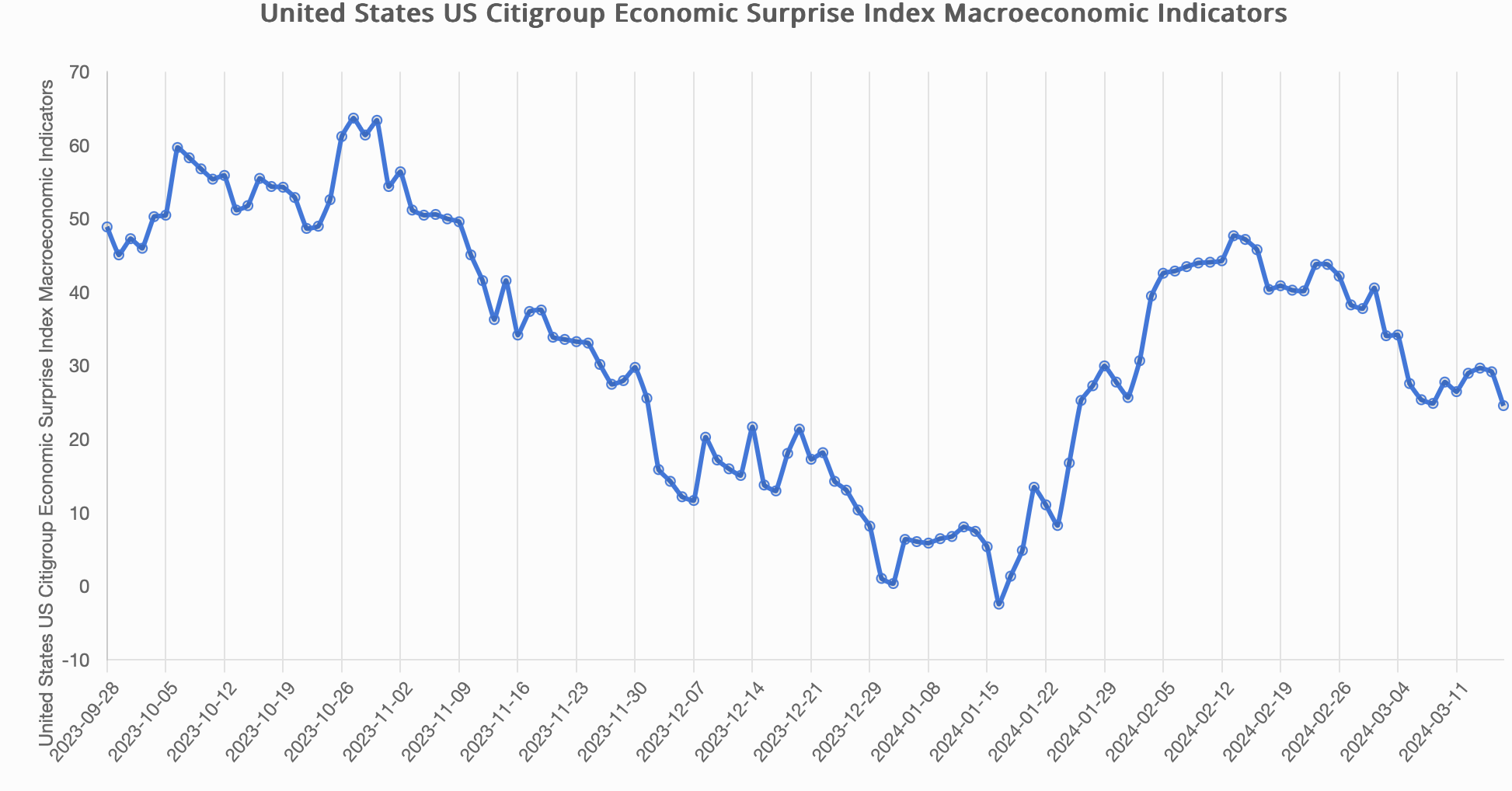 One interesting aspect of this chart is that you can see during Q1, when the equity markets rallied and bullishness was rife, this index was rallying as well. But remember what we learned last week regarding Q1’s GDP, it was revised lower to just 1.3% annualized. So, if better than expected data still led to weak growth, what will declining data do?