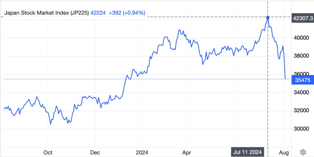 I will be the first to admit I do not know the inner workings of the Nikkei at all. However, I am confident that there were numerous fingers of instability beneath the surface that led to this move. Arguably, some of those were the recent appreciation in the yen, which has rallied ~8% in the past month with a negative impact on Japanese exporter earnings. And of course, just Wednesday night the BOJ tightened policy in a surprising move, but as importantly, explained they would be reducing their QQE, and that further tightening was likely going forward. Finally, the US market, especially the tech sector, has been under some pressure as well given some lackluster earnings reports by key Mag 7 players. Combine all that and you have a situation ripe for a major correction. It’s just that it is rare to put it all together ahead of time.
