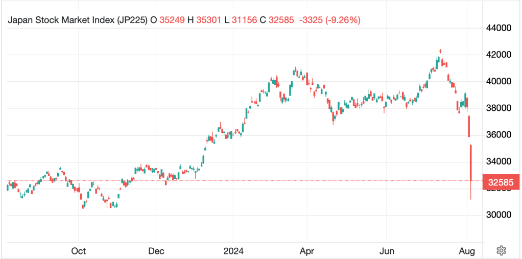 At this point, you will read many stories about which particular catalyst drove this market reaction, whether it was last week’s BOJ meeting where Ueda-san surprised the market and hiked rates as well as promised to reduce QQE, or whether it was the fact that Chairman Powell did not cut rates, or if it was the weak payroll report. Others will point to the escalation in hostilities in Ukraine and the Middle East as flashpoints getting people to exit risk positions. But in the end, the catalyst is not important. As I wrote on Friday, and is so well explained in Mark Buchanan’s book, Ubiquity, the market was rife with ‘fingers of instability’ and an avalanche has begun.