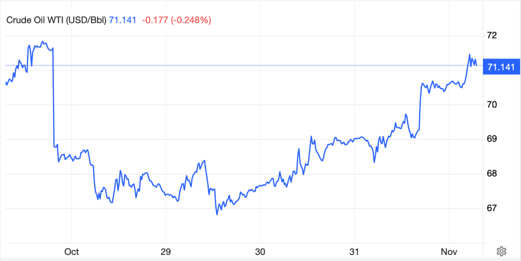 Finally, the dollar is strong this morning, rallying against most of its G10 counterparts with JPY (-0.4%) the laggard while the pound (+0.1%) seems to be benefitting from higher yields. Versus the EMG bloc, the dollar is also broadly higher with only MXN (+0.2%) showing any life. The peso has a number of issues ongoing with concerns that a Trump victory may lead to tariff increases and strain on the economy while domestic issues have arisen over the potential resignation of eight of their Supreme Court Justices which will have a big impact on the judicial system and potentially the Morena party’s ability to rule effectively. However, after a steady weakening of the peso throughout October, it appears we are seeing a bit of a bounce this morning.