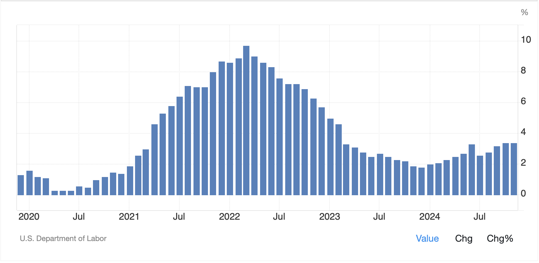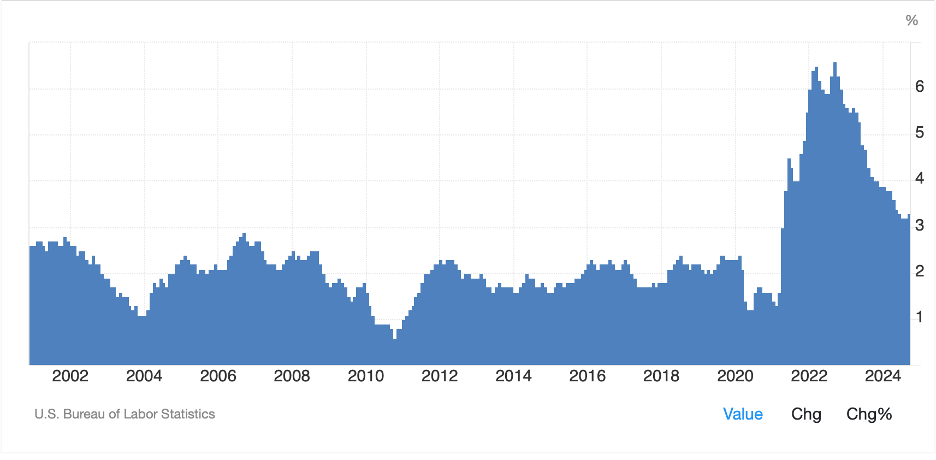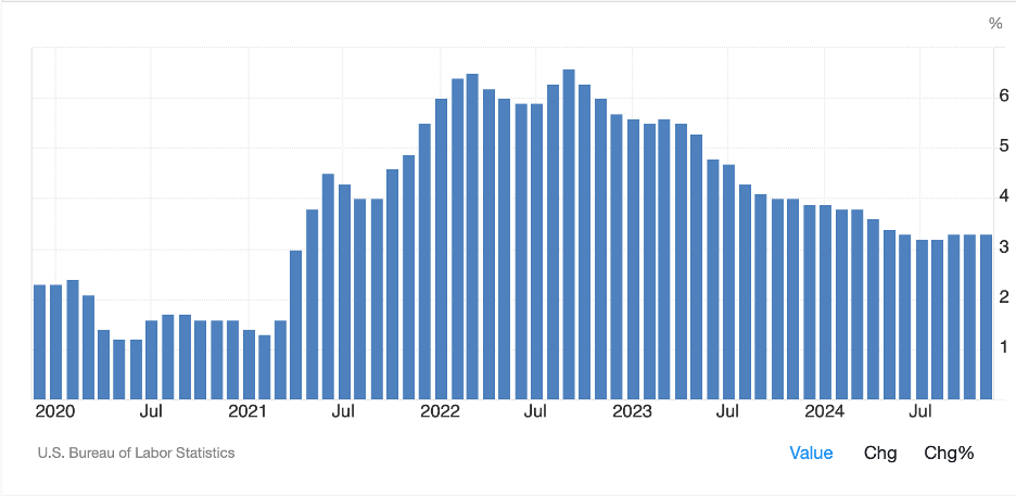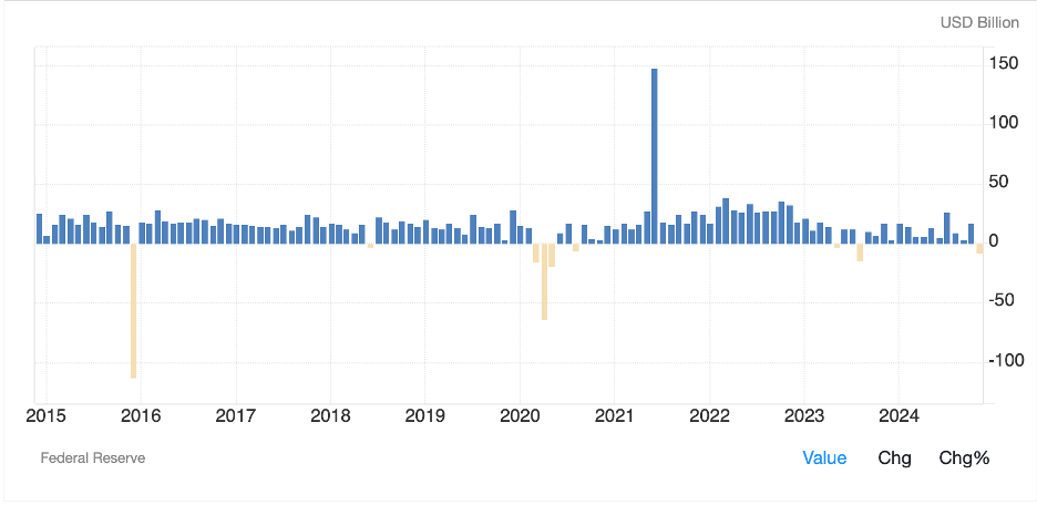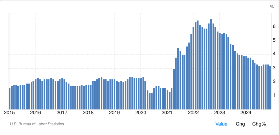 Meanwhile, a WSJ headline, China’s Population Fell Again Despite a Surprise Rise in Births, highlights yet another issue President Xi faces, the ongoing aging and shrinking of his nation. Remember, GDP is basically the product of the number of people working * how much they each produce. If that first number is shrinking, and the working age population in China is doing just that, it is awfully difficult to generate GDP growth. Finally, I couldn’t help but notice in yesterday’s confirmation hearings for Treasury secretary, where Scott Bessent offered his view that China is actually in a recession, with massive deflation and are struggling to export their way out of the problems, rather than address their internal imbalances. This is a theme that has been discussed widely in the past, and ostensibly, China has admitted they want to be more consumption focused in their economy, but it doesn’t appear that is the direction they are heading.