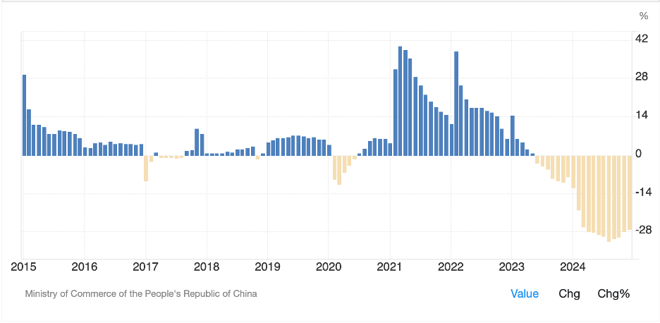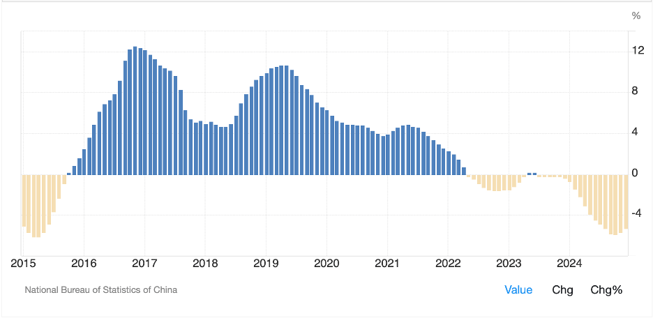 Last night, the Chinese released their monthly data barrage with final 2024 numbers as part of the mix. Despite numerous indications that Chinese growth is slowing, somehow, they managed to show a 5.4% annualized GDP growth rate for Q4 and a 5.0% GDP growth rate for all of 2024, right on President Xi’s target.