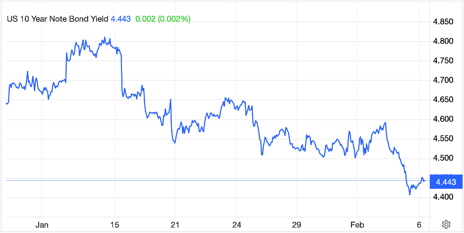 Perhaps it is still the honeymoon period, but the market is showing some deference to Mr Bessent as 10-year yields have fallen steadily in the past two weeks, dropping from a high of 4.81% the week before the inauguration to their current level at 4.44%.