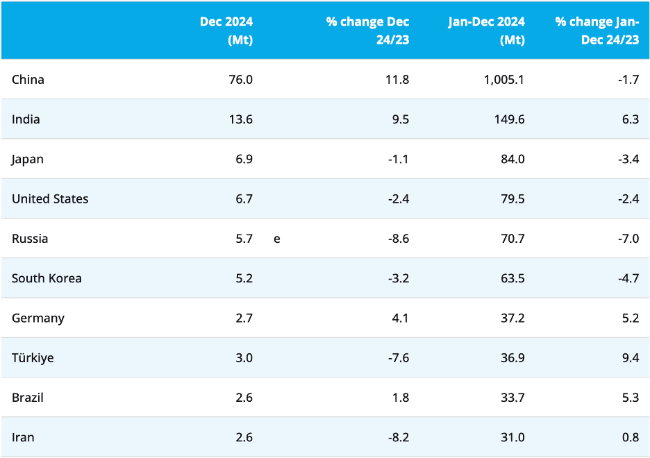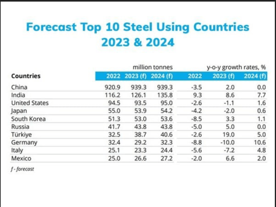 And while this is not an exact apples-to-apples comparison, the below chart shows forecasts for steed demand in 2023 and 2024. The mismatches are clear as China, South Korea and Japan have a significant surplus to export while the US and India need imports.