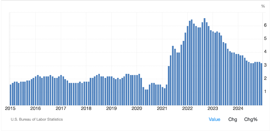 In the commodity markets, yesterday’s metal market declines are mostly continuing this morning with gold (-0.6%) down again, although still hanging around $2900/oz. Silver has slipped although copper (+0.3%) has arrested its decline. Oil (-1.1%) is giving back some of yesterday’s gains and continues to trade in the middle of its trading range with no real direction. One thing I haven’t highlighted lately is European TTF NatGas prices, which while softer this morning (-1.9%) have risen 15% in the past month as storage levels in Europe are declining to concerning levels and global warming has not resulted in enough warm days for the winter.