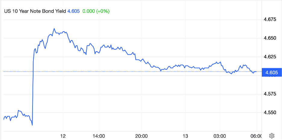 It will be no surprise that the stock market’s initial response was to sell off substantially, but as per the chart below, it spent the rest of the day clawing back the losses and wound up little changed on the day. This morning, it remains basically unchanged as well.