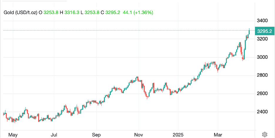 In the bond market, yields have been edging lower despite (because of?) all the tariff anxiety. While Treasuries are unchanged this morning, they drifted off 3bps yesterday. European sovereign yields are all lower by -2bps to -3bps and the big news was JGB yields tumbling -10bps last night. There continues to be a great deal of discussion about China using its Treasury holdings as a weapon, but I find that highly unlikely. Unless they could literally find a bid for all of them at once, to prevent further losses, it would self-inflict too much damage. My take is they are essentially performing their own version of QT, allowing Treasuries to mature and slowly replacing them with other things, Bunds, gold, oil, copper. One of the biggest problems is there are precious few asset classes that are large enough to absorb all that money, so they will continue to hold Treasuries in some relatively large amount, probably forever.