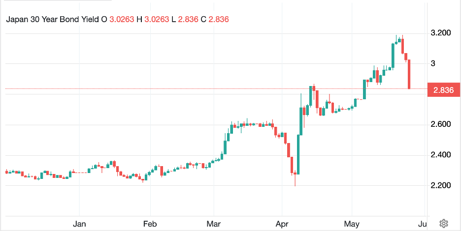 Apparently, the bond vigilantes have spent the past decades learning Japanese. At least that is what I conclude from the price action, and more importantly, the BOJ’s recent response in the JGB market. As you can see in the chart below, there has been a significant reversal in 30-year JGB yields with similar price action in both the 20-year and 40-year varieties.