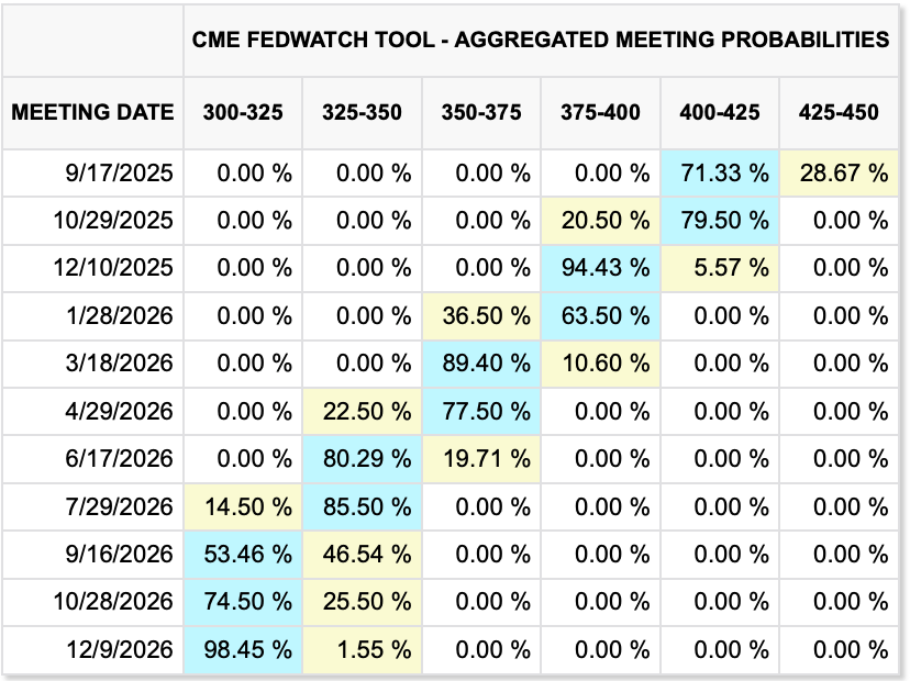 Clearly, the big story today is Chairman Powell’s speech with growing expectations that he will sound more hawkish than had previously been anticipated.  Recall, after the much weaker than expected NFP data was released at the beginning of the month, it appeared nearly certain that the Fed was going to cut at the next meeting with talk of 50bps making the rounds.  Now, a few hours before Powell steps to the podium, the futures market is pricing just a 71% probability of that rate cut with a just two cuts priced in for 2025 as per the CME’s own analysis below: