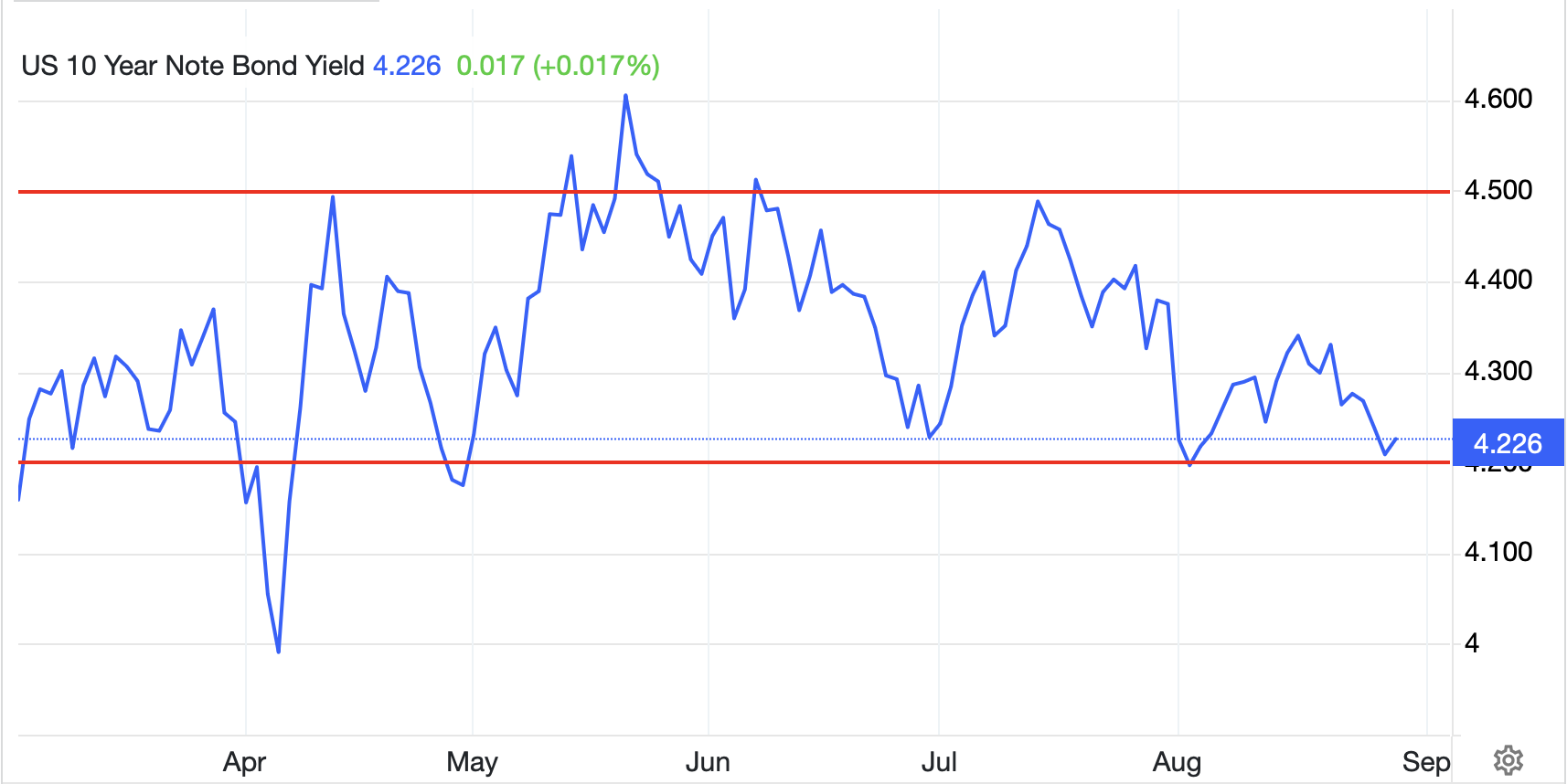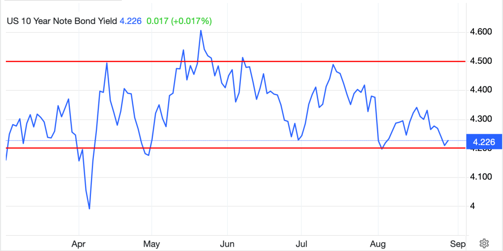 To conclude, ranges remain the situation in most markets other than equities which continue to rally based on hopes and prayers that central bank spigots are never turned off. With Labor Day on Monday, perhaps we will begin to see more real activity reenter the market as traders and investors come back from summer vacation. But we will need a real catalyst to break those ranges, whether that is a shocking NFP number, a reescalation of Middle East conflict or something else (China laying siege to Taiwan?). While I don’t know what that catalyst will be, history tells us something will come along, that’s for sure.
