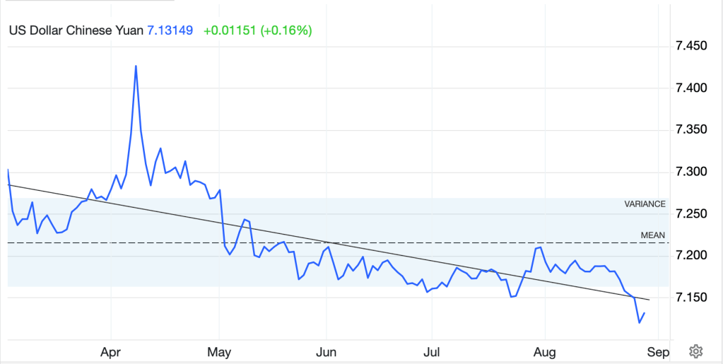 Perhaps the futures market is starting to expect that Governor Lisa Cook’s days are truly numbered with a third instance of potential mortgage fraud surfacing yesterday, a situation that has a bad look for a Fed governor. If she is forced out soon, that would be yet another Fed governor that President Trump will get to appoint, and the tension in the Marriner Eccles building will certainly grow at that September meeting. After all, if Trump seats two more governors, and has 4 votes for a rate cut on the board, the question will not be should they cut, but how much they should cut with 50 basis points on the table regardless of the economics.