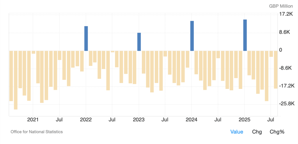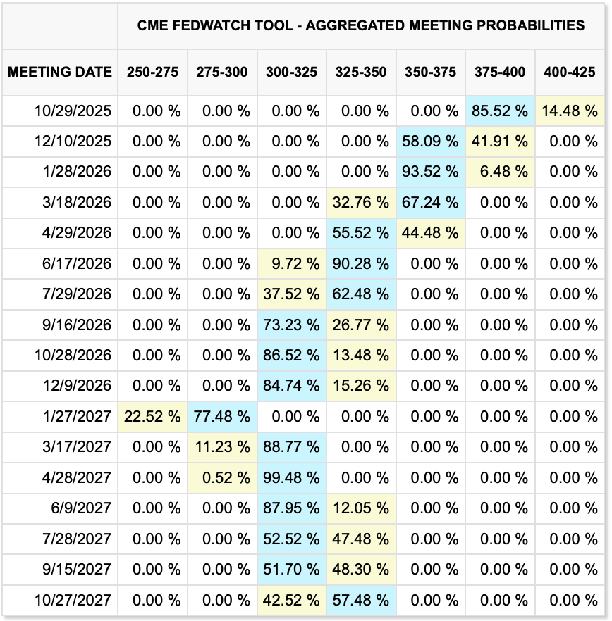 I asked Grok what happens in a shutdown and reading through what occurs in each cabinet department, it will take several weeks, I believe, before anybody really notices. The War Department and Homeland Security continue to function, so ICE agents are not going to disappear from the streets anytime soon. Too, Social Security, Medicare and Medicaid are untouched. I would argue those are the biggest issues. The FBI and prisons remain active as does the FAA and TSA. Maybe the biggest short-term issue is economic data will be delayed so there will be no NFP on Friday. Given its recently demonstrated inaccuracies, that may be a benefit, although I’m sure that’s not the case.