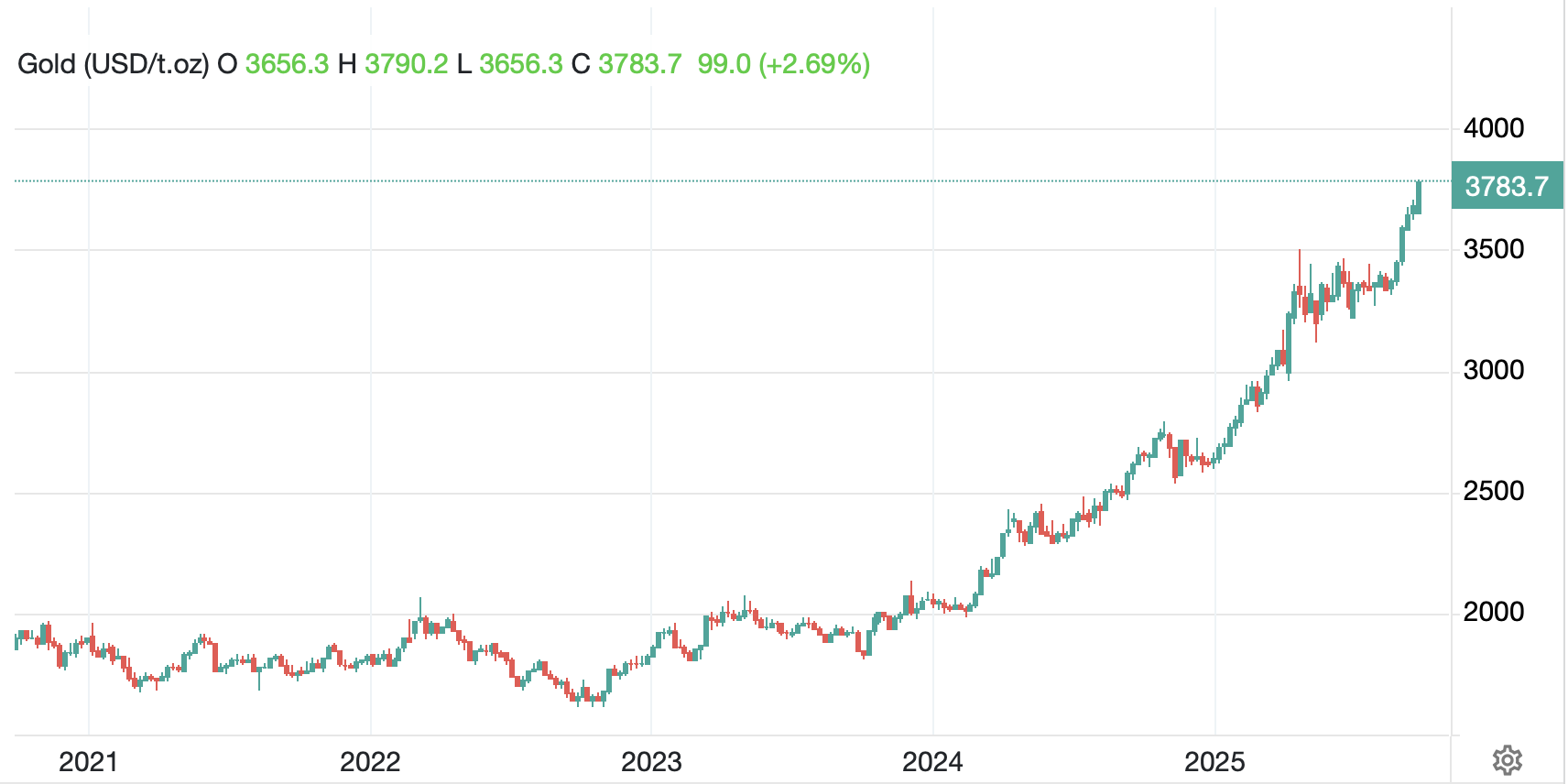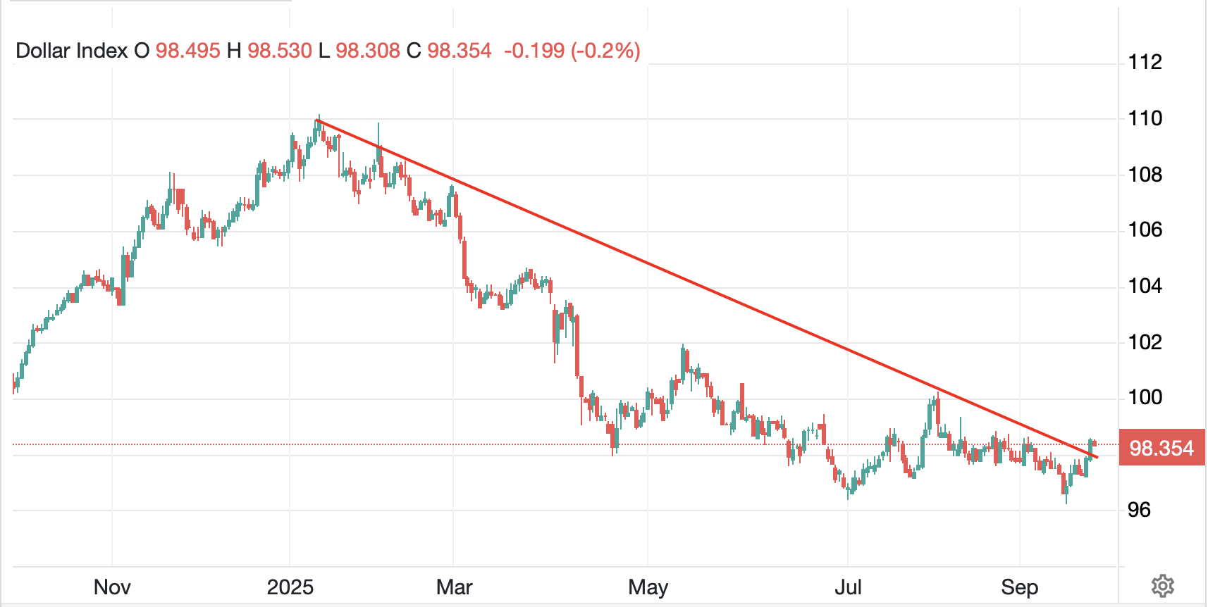 For whatever reason, the end of last week had oil bulls out in force, but they are an unhappy lot this morning. Apparently, President trump and Israeli PM Netanyahu have agreed a Gaza peace plan, although the Palestinians were not privy to the details. Perhaps peace there is reducing concerns in the oil market although I would have thought the Russia/Ukraine situation has a more direct impact. As to metals, after another series of new highs across the precious space yesterday, this morning we are finally seeing a bit of profit taking (Au -0.7%, Ag -1.7%, Pt -2.8%, Cu -1.0%). However, it is difficult to look at the chart and sense that this is over.