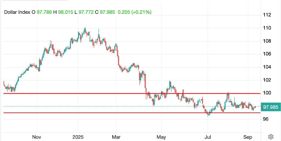 Finally, the dollar is a bit firmer this morning, probably one reason the precious metals are under some pressure, but here too, if we use the DXY as our proxy, the range is pretty clear.