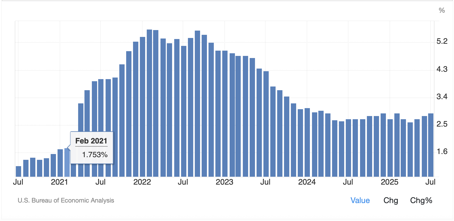 All this begs the question, what is the purpose of the Fed cutting rates? A key risk is that inflation will return with a vengeance. It has been 55 months since core PCE was at or below the Fed’s target level of 2.0% as you can see in the below chart, and I feel confident in saying that when the data is released this Friday, it will not be changing that trend.