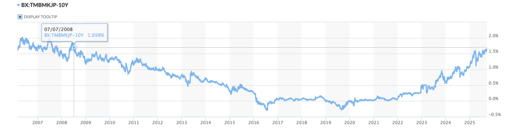 In the bond market, yields having moved higher on Friday, are quite stable this morning with Treasury yields unchanged and most of Europe seeing a -1bp decline. The only outlier here is Japan, where JGB yields topped 1.65%, a new high for the move and the highest level since 2008 as per the below chart from marketwatch.com. Ueda-san has to start getting worried soon, I think.