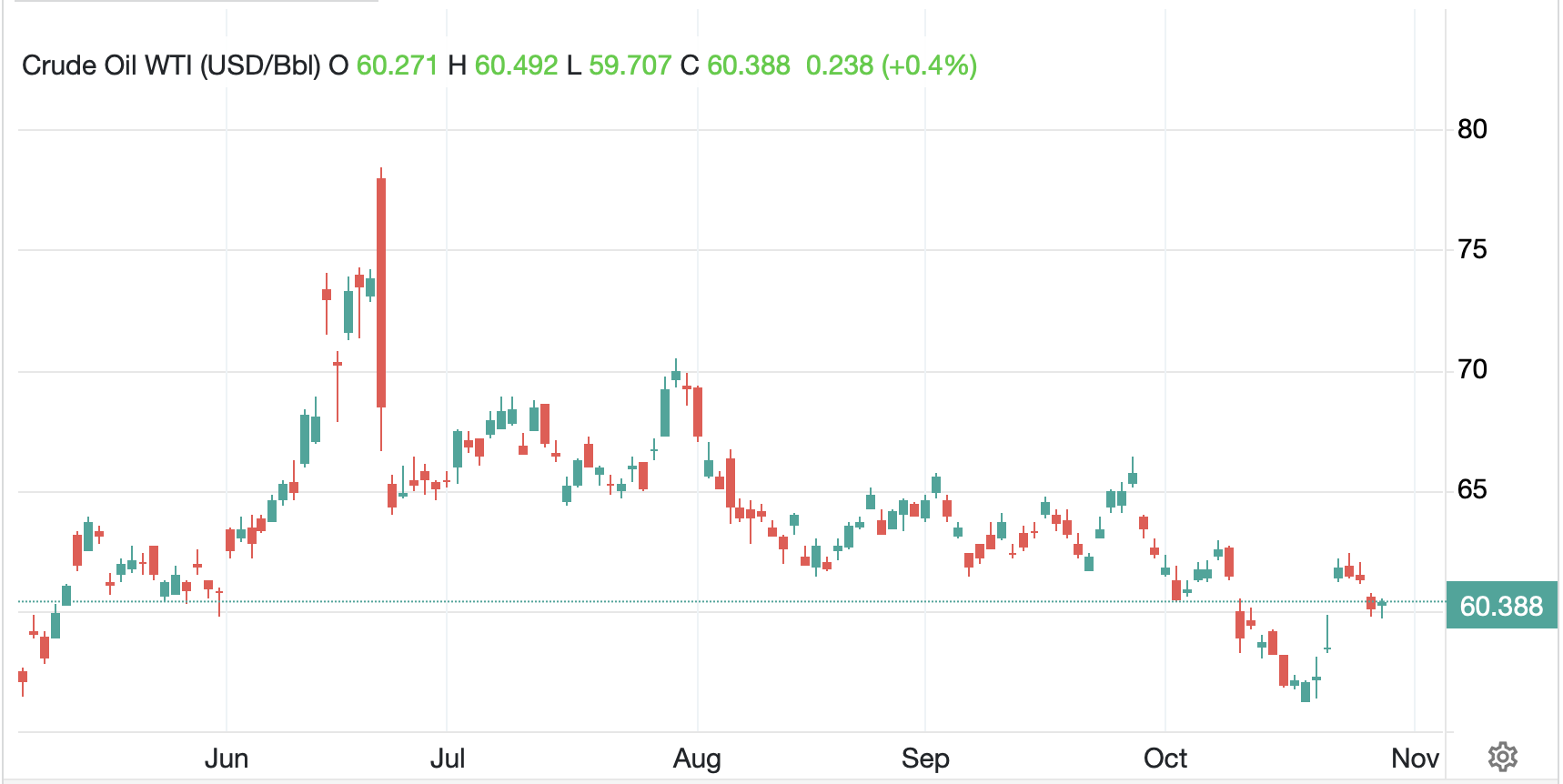 In the metals markets, volatility is still the norm with gold (-0.45%) lower this morning after a nice rebound yesterday and currently trading just above $4000/oz. Silver and copper are unchanged this morning with platinum (-0.9%) following gold. However, regardless of the recent market chop, the charts for all these metals remain distinctly bullish and the theme of debased fiat currencies is still alive. Run it hot is still the US playbook, and that is going to support all commodity prices.