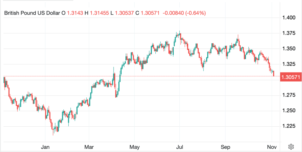 For those who view the DXY as the key indicator, it has traded above 100 for the first time since August, and I know many technicians are looking for a breakout here. The fact remains that the Fed’s recent seeming mildly hawkish turn is out of sync with most of the rest of the world and will support the dollar for now. Of course, the futures market is still pricing a 72% probability of a rate cut in December, so traders are taking the ‘hawkish’ comments by Chair Powell at the press conference last week with a grain or two of salt. In fact, one of the things weighing on the pound is the idea that the BOE may cut this week despite still high inflation.