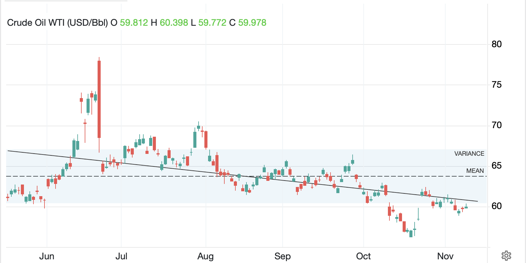 While oil prices have remained stuck in a narrow range, trading either side of $60/bbl for the past 6 weeks amid a longer-term drift lower as you can see in the below chart, oil is only utilized by ~4% of homeowners for heating with 46% using NatGas.