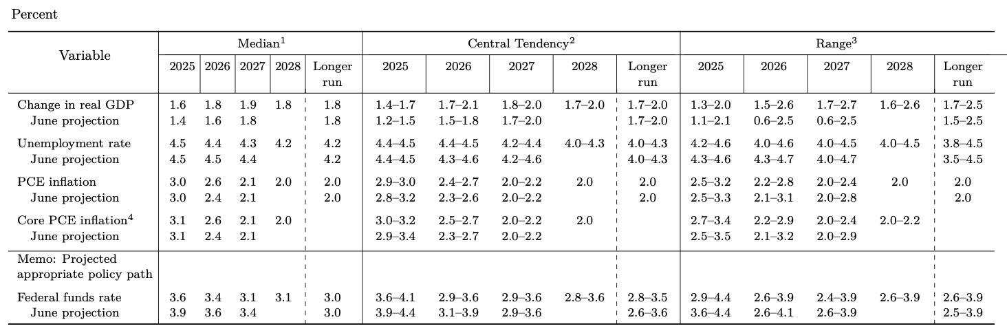 Looking back at the Fed’s September Summary of Economic Projections, it appears that the Fed sees a very different economy than the markets see. In fact, you can see that they believe nominal GDP in the long run is going to average <4.0% (sum of longer run GDP and PCE in the table below).