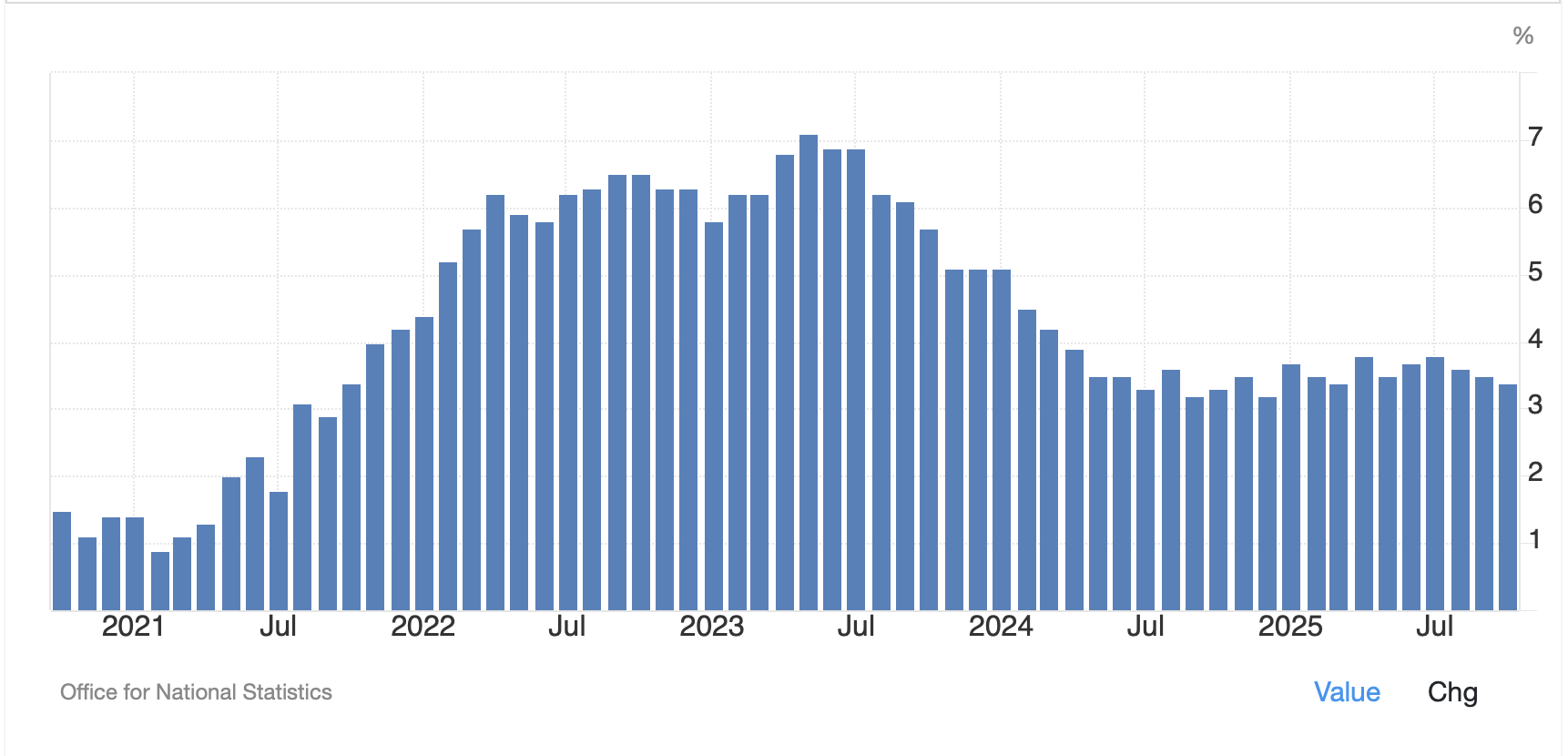 In the bond market, Treasury yields are unchanged this morning, still sitting right around that 4.10% level while European sovereigns have seen demand with yields slipping -2bps to -3bps across the continent. The UK is the outlier here, with yields unchanged after releasing inflation data that was bang on expectations, and below last month’s readings, though remains well above their 2.0% target. I guess if I look at the chart below, I might be able to make the case that core UK CPI is trending lower, but similarly to the Fed, the last time they were at their target was July 2021.