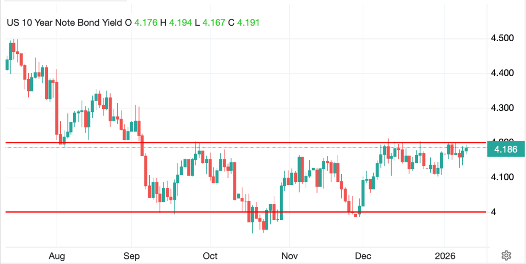 In the bond market, while yields have edged higher by 2bps this morning, as you can see from the chart below, they remain within, albeit at the top, of the recent 4.0% – 4.2% trading range.