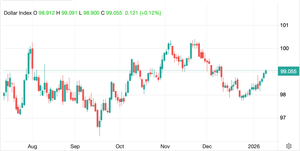 Finally, the dollar continues to rebound off its recent lows with the DXY back to 99 again this morning. it has rallied in 11 of the past 13 sessions, not typical price action for a trading vehicle that is in decline.
