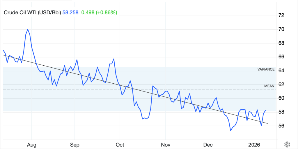 Wednesday, we saw a large draw in crude inventories abut a massive build in both gasoline and distillates which feels mildly bearish. The narrative is the Iran story is getting people nervous for potential short-term disruption, but I remain overall bearish for now. As to the metals markets, gold (-0.3%) is slipping after having recovered early morning losses yesterday and finishing higher, while silver (+0.6%) is still bouncing along with copper (+1.8%) and platinum (+0.4%). Metals are in demand and supply is short. Price here have further to rise I believe.