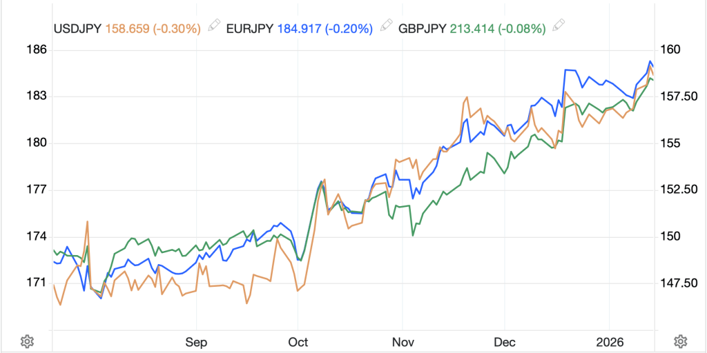 Second, there continues to be a belief that the BOJ will continue to hike interest rates, and perhaps they will, but it appears that the pace of those hikes will be far slower than previously anticipated. Currently, the market is pricing just 50bps of hikes for all of 2026. At the same time, Takaichi-san is set to “run it hot” in Japan just like in the US, pumping up fiscal stimulus and forcing the BOJ to come along for the ride. The implication here, which is what we are seeing in the markets right now, is that a larger fiscal deficit will lead to strength in equities but a weaker currency. The second leg of the yen strength argument is failing here as well.