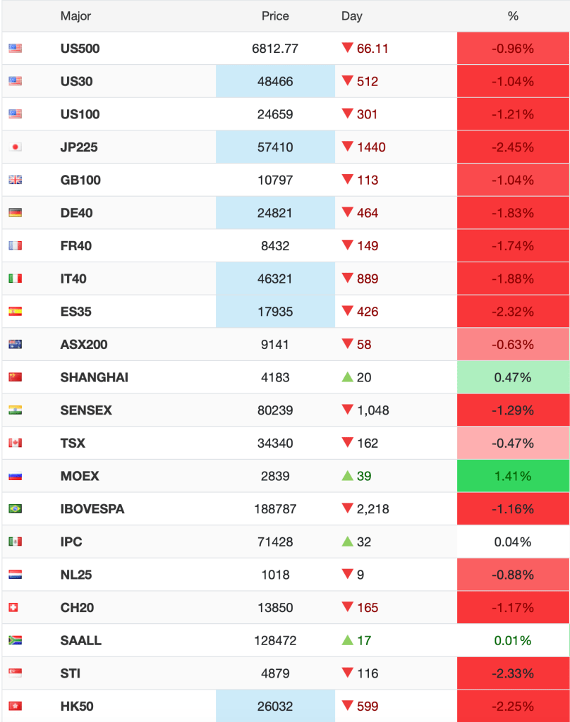The MOEX is Russia’s stock market, so it is not clear what value that adds to the conversation and the TSX, Toronto, does not have a futures market, so the price represents Friday’s close.  But as you can see, all of Europe and all of Asia ex-China have fallen sharply.