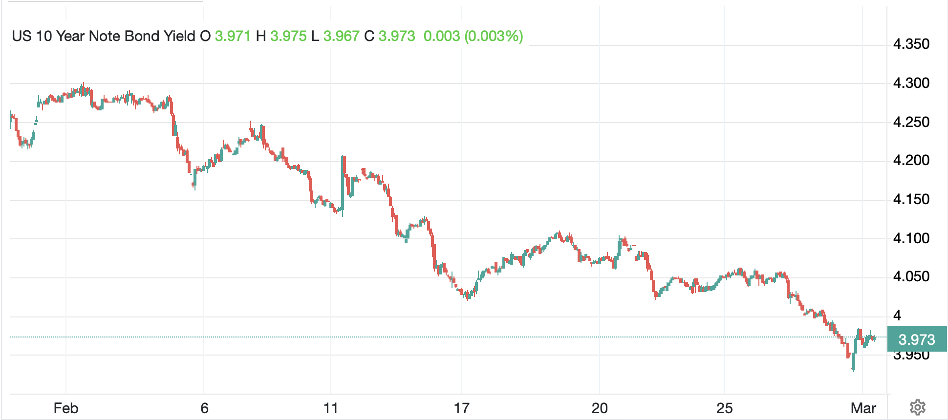 The treasury move was interesting as the initial trade, at last night’s opening, was for lower yields as per the chart above, but that has since reversed.  It could be investors are concerned over additional defense spending blowing out the deficit further but there is no clear signal or commentary I have seen yet on the subject.