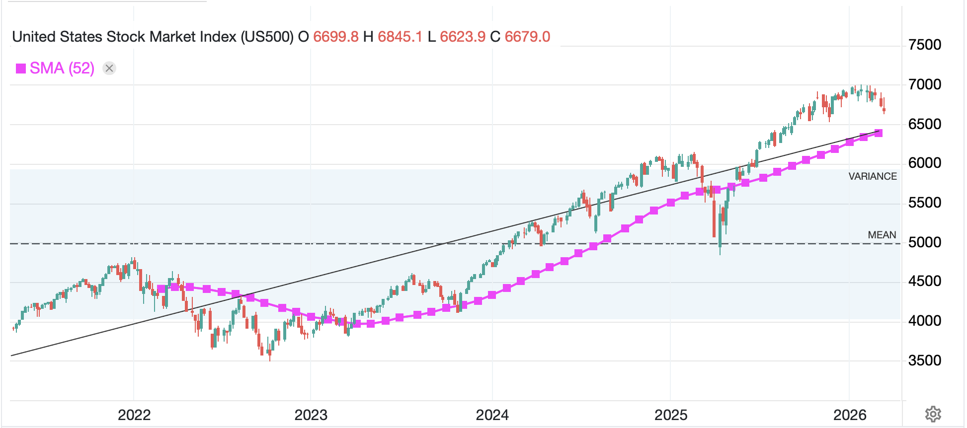My point is that despite fears of the death of the equity rally, as I type this morning, the S&P 500 is just 4.5% from its all-time high made at the end of January. I am no technician, but the chart below shows both the long-term direction and the 52-week moving average, and the current price is well above both of these indicators. This is not to say the market cannot decline from here, just that the broader trend remains higher. It does not feel very apocalyptic to me at this point.