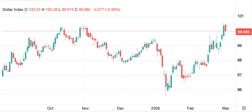 Finally, the dollar is a bit softer this morning but has retained most of its gains from this move. However, as a descriptor of today’s lack of fear, the dollar’s pull back is as clear a signal as any. So, the euro (+0.5%) is rebounding away from the 1.1400 level seen Friday, while the yen (+0.4%) is backing away from the 160 level. AUD (+1.0%) seems like it is preparing for this evenings’ RBA rate hike, but the dollar is lower across the board after a solid run ever since the Warsh announcement. Looking at the DXY (-0.35%) below, you can see that today’s move is modest in the scheme of things, and we will need to see a lot more dollar selling before this trend changes.